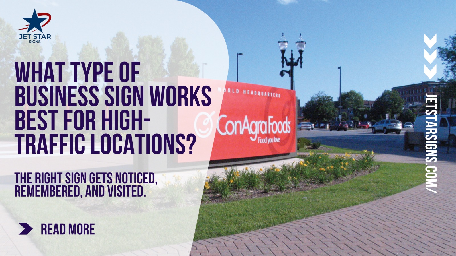 In places of high traffic, the most suitable business sign is a clear, bold, and visible one that can be viewed over a distance. Cabinet signs, big channel letters, pylon signs, and LED displays are all good in the correct choice.